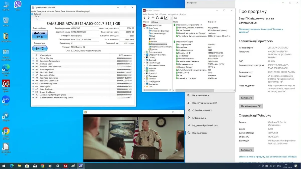 - Процесор: Intel Xeon E3-1505M v6 (4 (8) ядра по 3.0 - 4.0 GHz), 8 MB Smart Cache