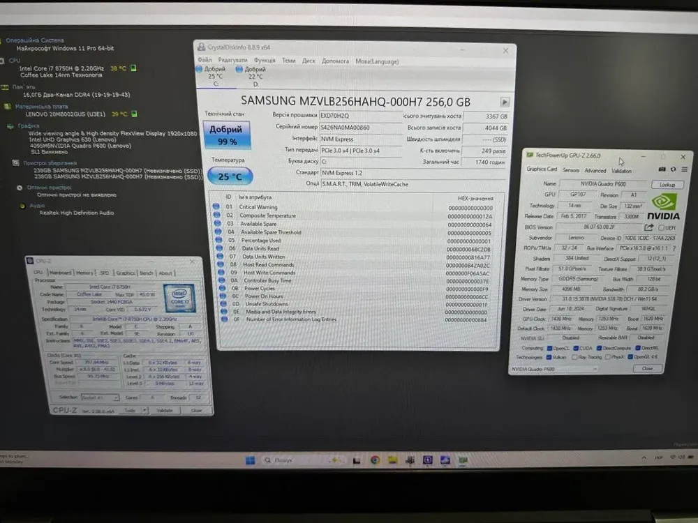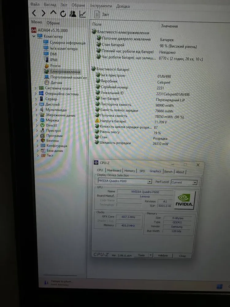 - Графіка: дискретна nVidia Quadro P620, 4 GB GDDR5, 128-bit