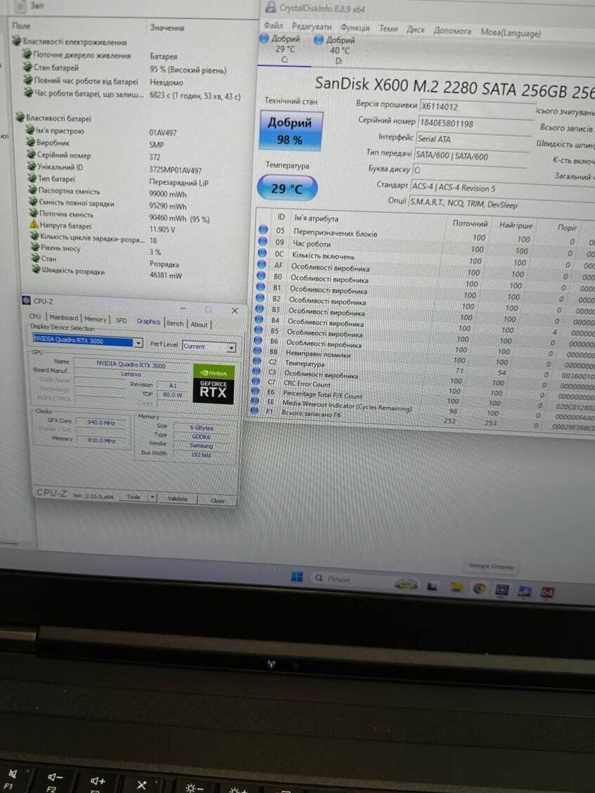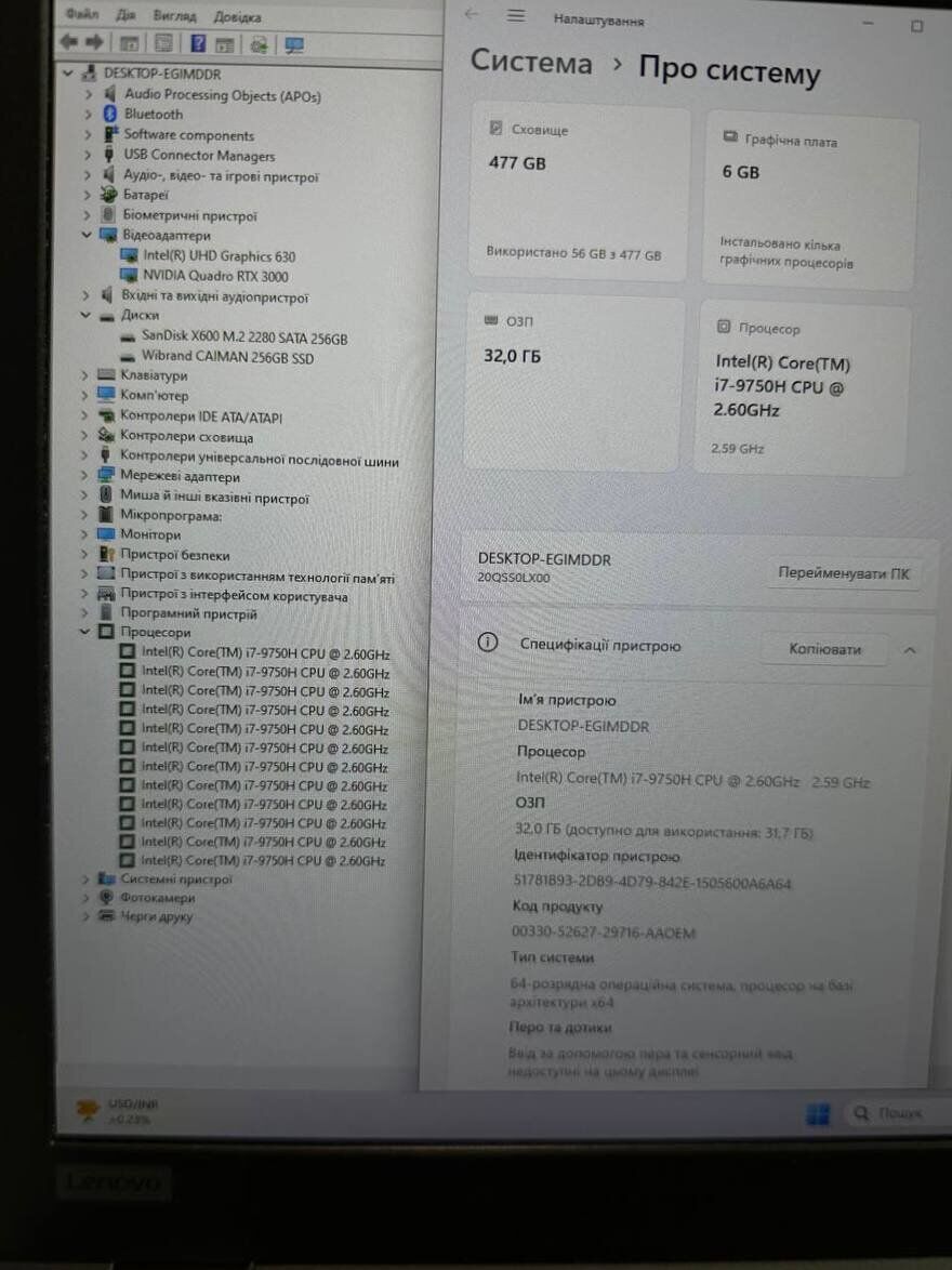 - Графіка: дискретна nVidia Quadro RTX 3000, 6 GB GDDR6, 192-bit