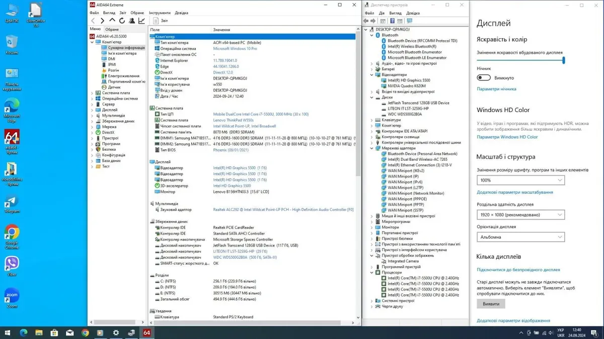 Мобільна робоча станція Lenovo ThinkPad W550s з екраном 15.6" (1920x1080) TN на базі процесора Intel Core i7-5500U і дискретної відеокарти nVidia Quadro K620M 2 GB для роботи і дозвілля