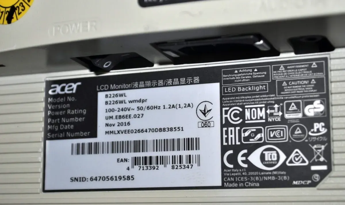 Широкоформатний монітор Acer Professional B226WL White з матрицею 22" (1680x1050) TN для офісної роботи і домашніх завдань