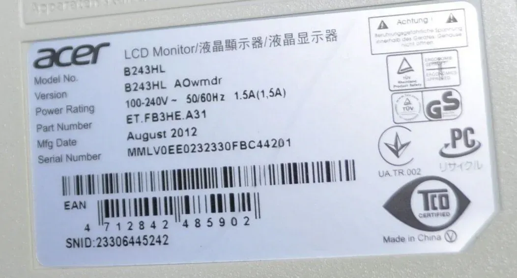 - Модель: Acer B243HL