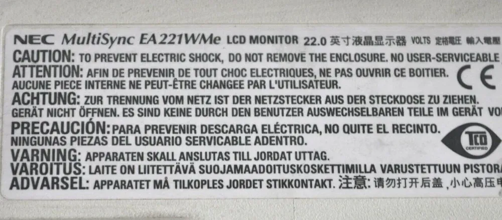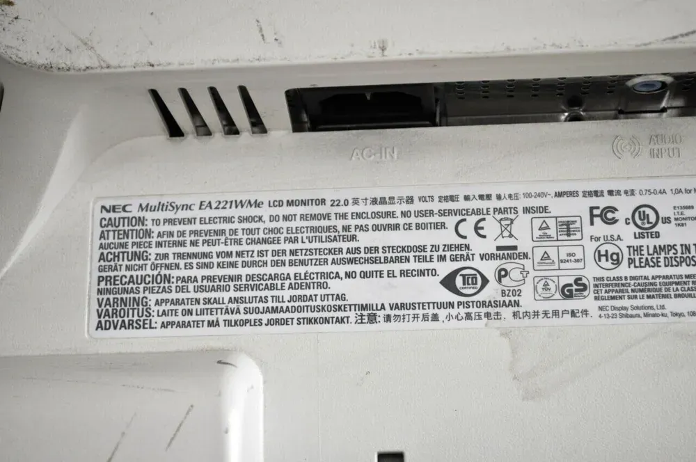Широкоформатний монітор Б-клас NEC MultiSync EA221WMe з матрицею 22" (1680x1050) TN для офісної роботи та домашніх завдань