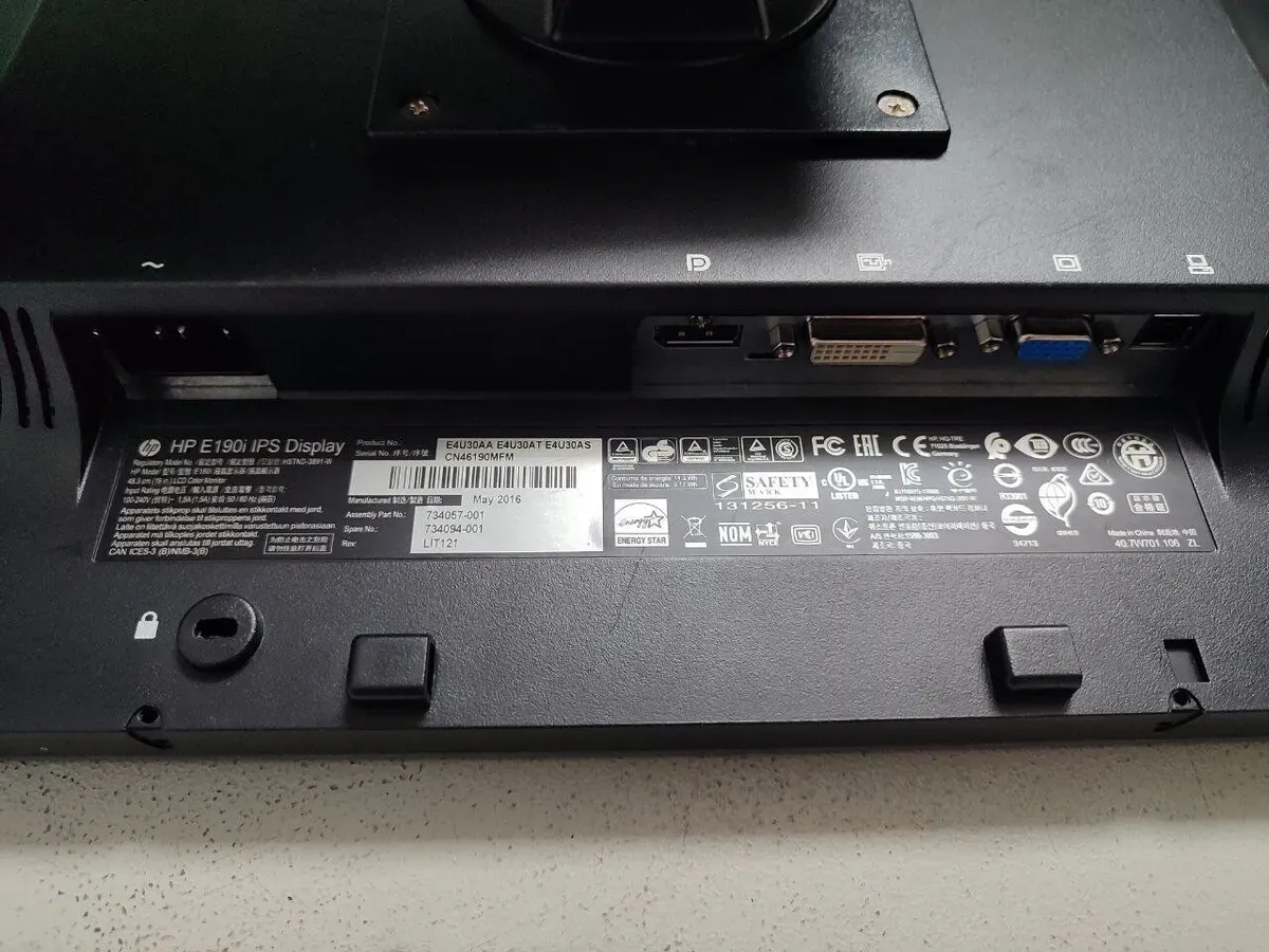Монітор HP EliteDisplay E190i / 19" (1280x1024) IPS / VGA, DVI, DisplayPort / VESA 100x100 / VGA і кабель живлення в комплекті б/в