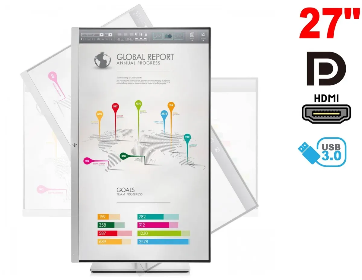 Монітор HP EliteDisplay E273Q / 27" (2560x1440) IPS / 1x HDMI, 1x DP, 1x VGA, 2x USB 3.0, 1x USB Type-C / VESA 100x100 / Pivot б/в