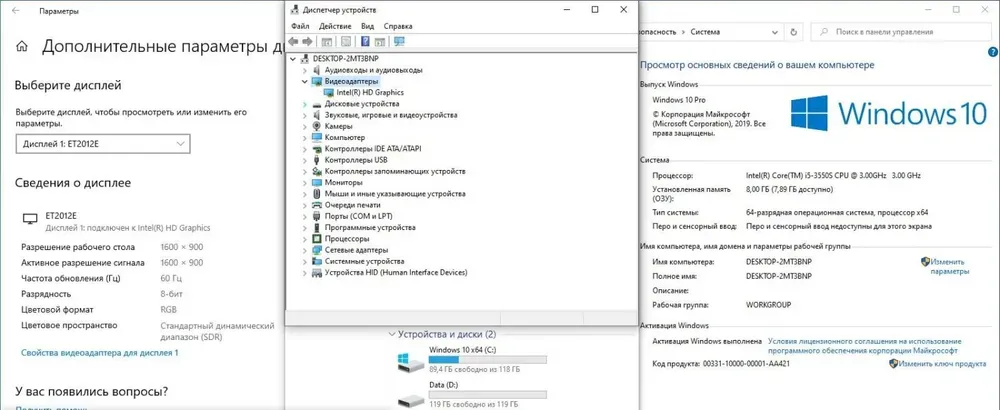 Видеокарта:Intel HD Graphics 2500
