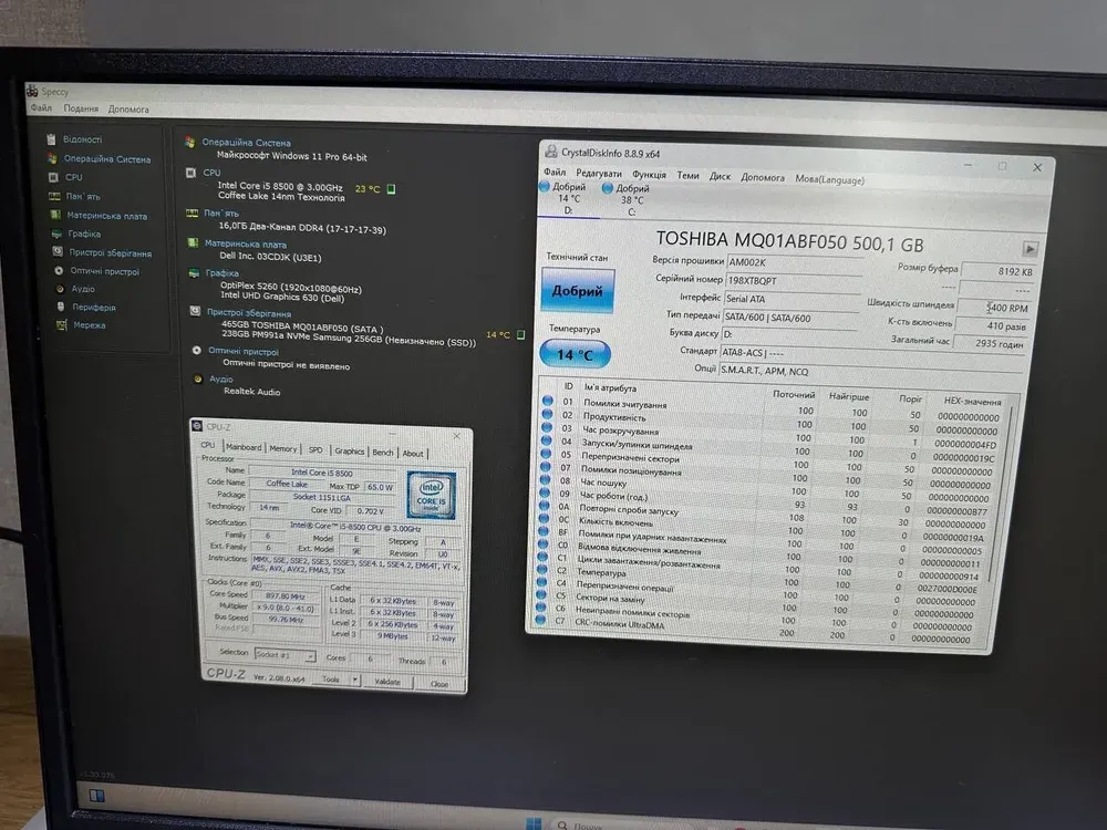 - Процесор: Intel Core i5-8500 (6 ядер по 3.0 - 4.1 GHz); Cache Memory 9 MB