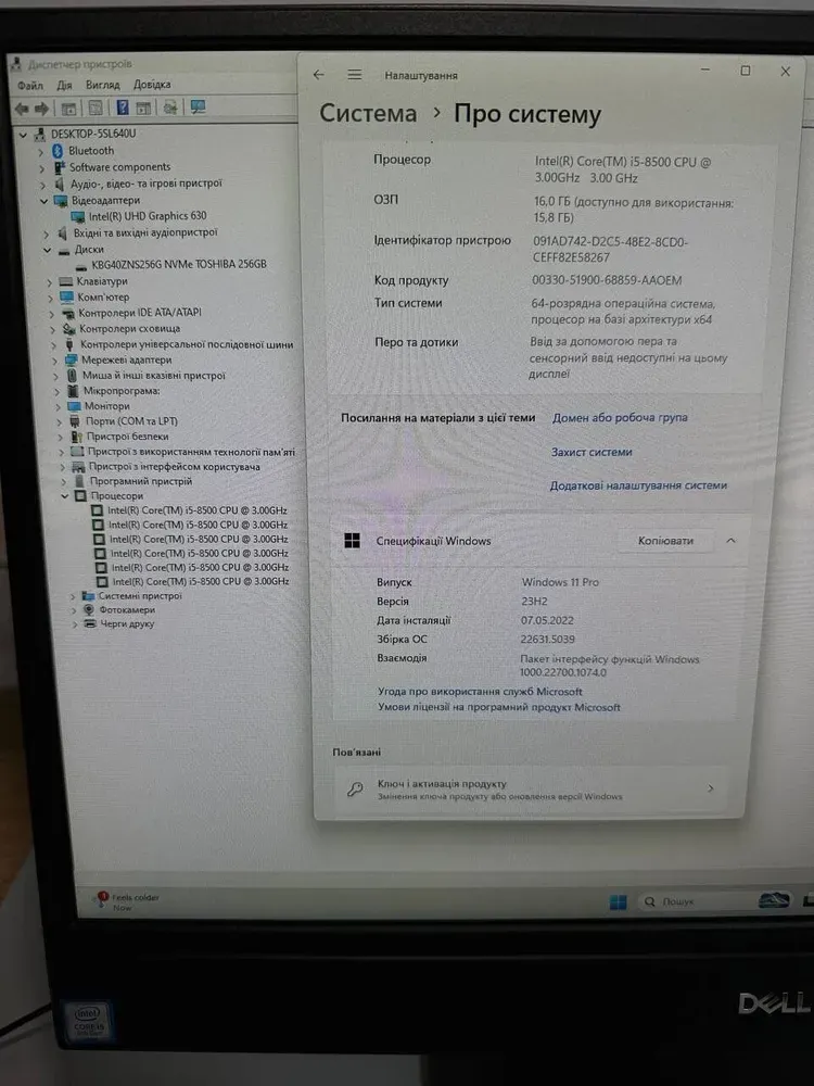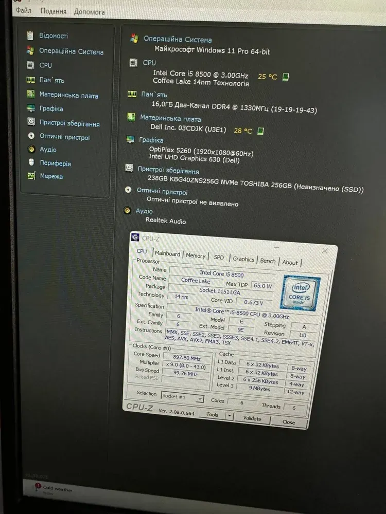 - Процесор: Intel Core i5-8500 (6 ядер по 3.0 – 4.1 GHz); Cache Memory 9 MB