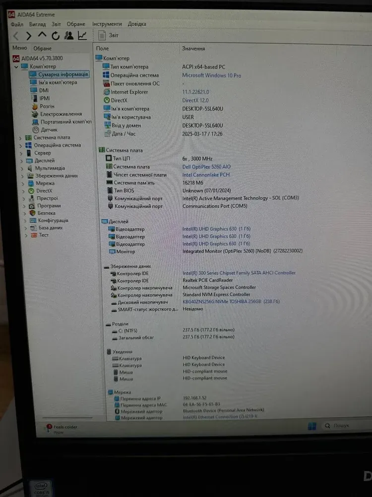 - Графіка: Integrated Intel UHD 630 (до 1792 МБ з ОЗУ)