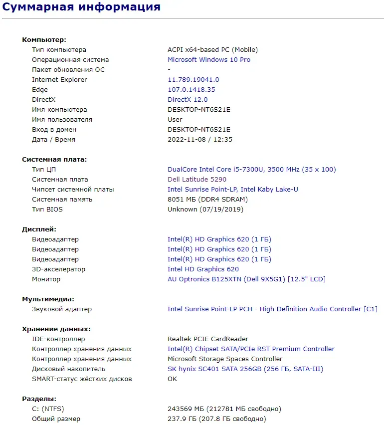 - Модель: Dell Latitude 5290