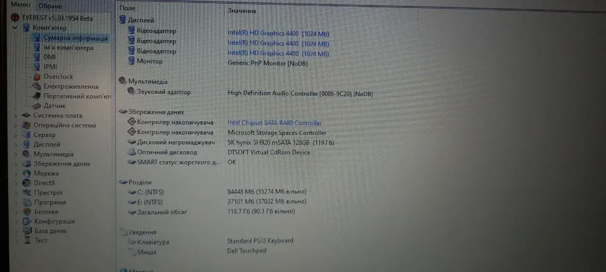 - Графіка: інтегрована Intel HD Graphics 4400 (до 1792 MB з ОЗП)