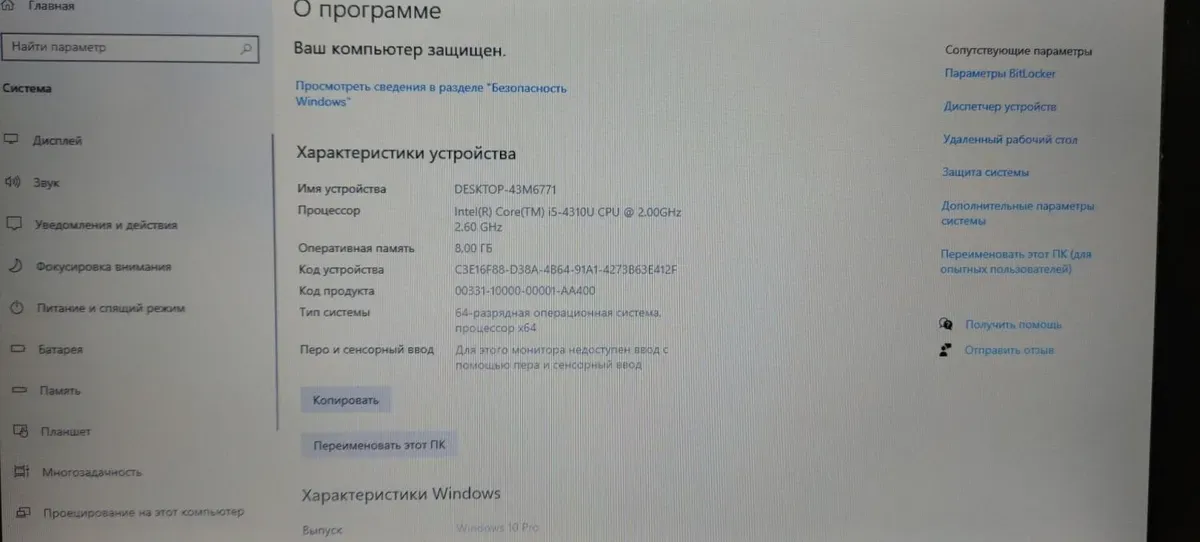 - Процесор: Intel Core i5-4310U (2 (4) ядра по 2.0 - 3.0 GHz), 3 MB Smart Cache