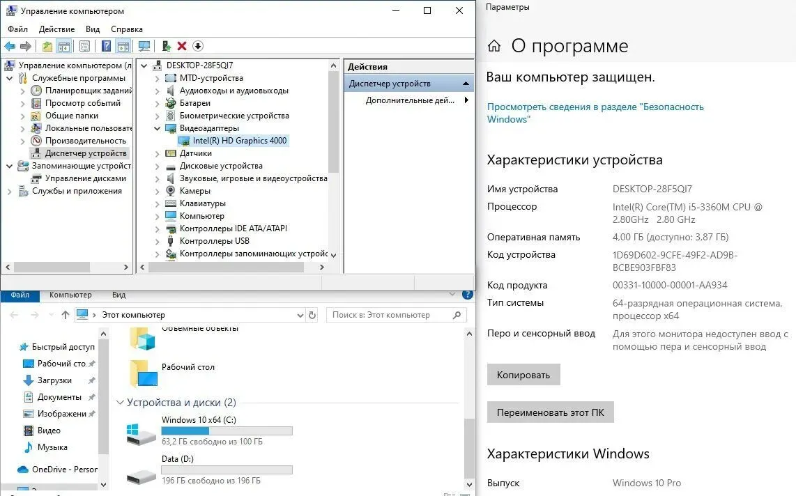 - Процесор: Intel Core i5-3360M (2 (4) ядра по 2.8 - 3.5 GHz), 3 MB Smart Cache