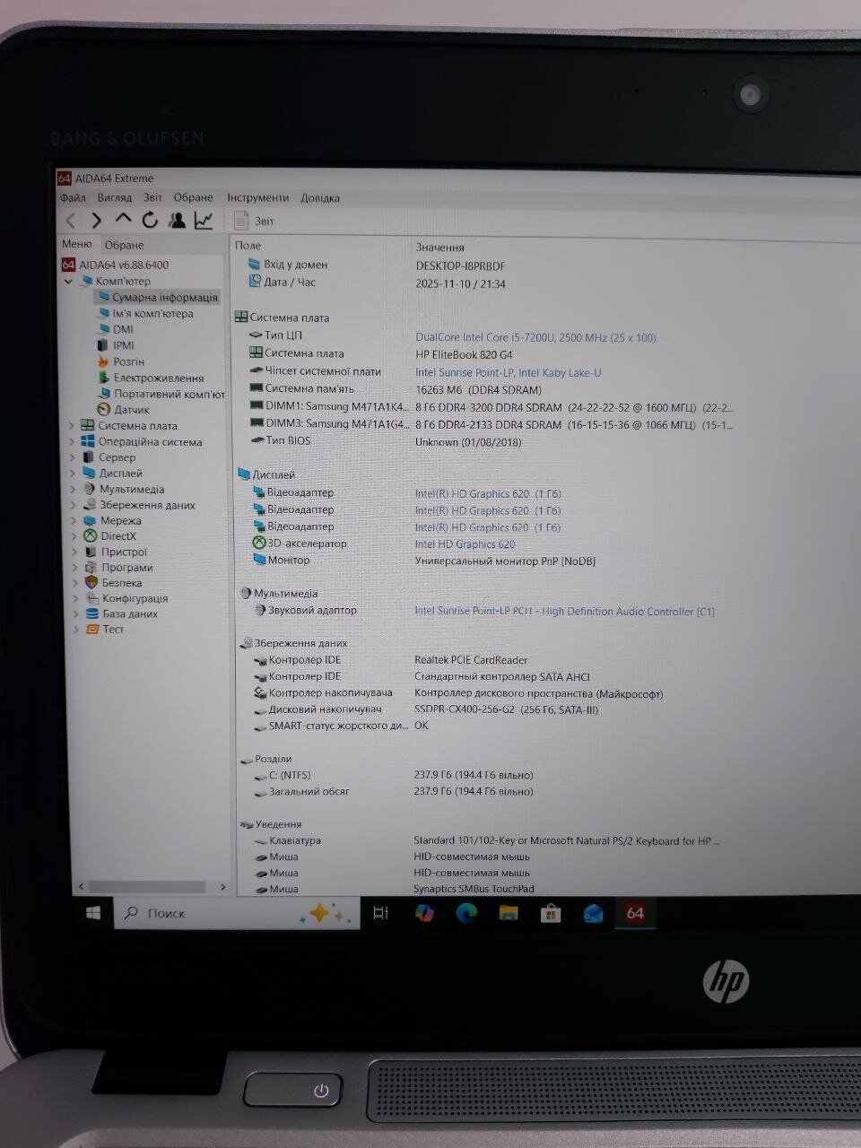 - Графіка: інтегрована Intel HD Graphics 620 (до 1792 МБ з ОЗУ)