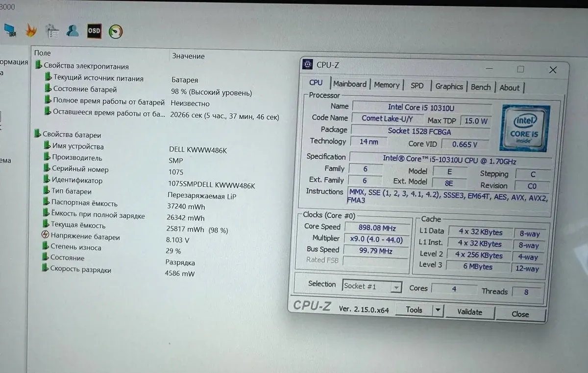 - Процесор: Intel Core i5-10310U (4 (8) ядра по 1,7–4,4 ГГц), 6 МБ Smart Cache