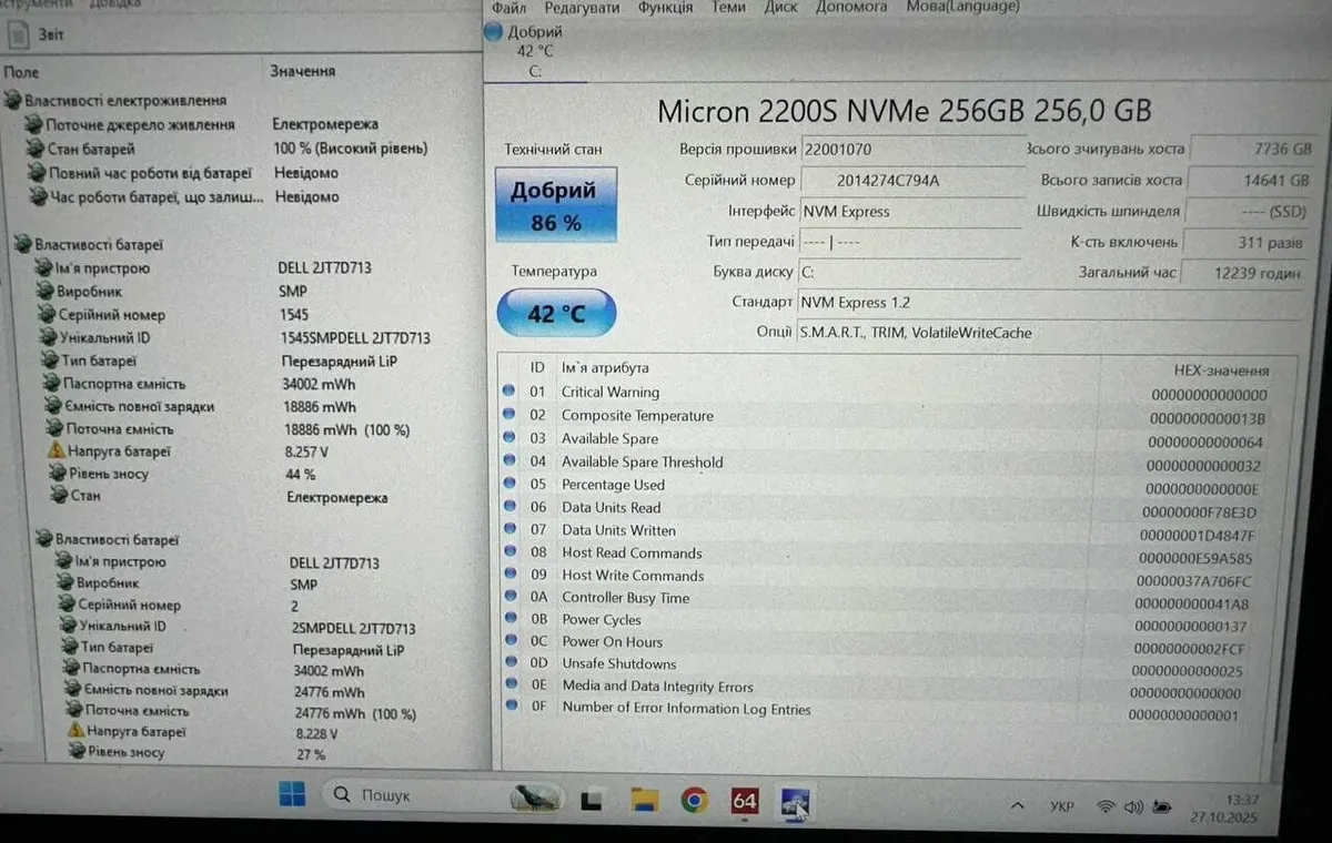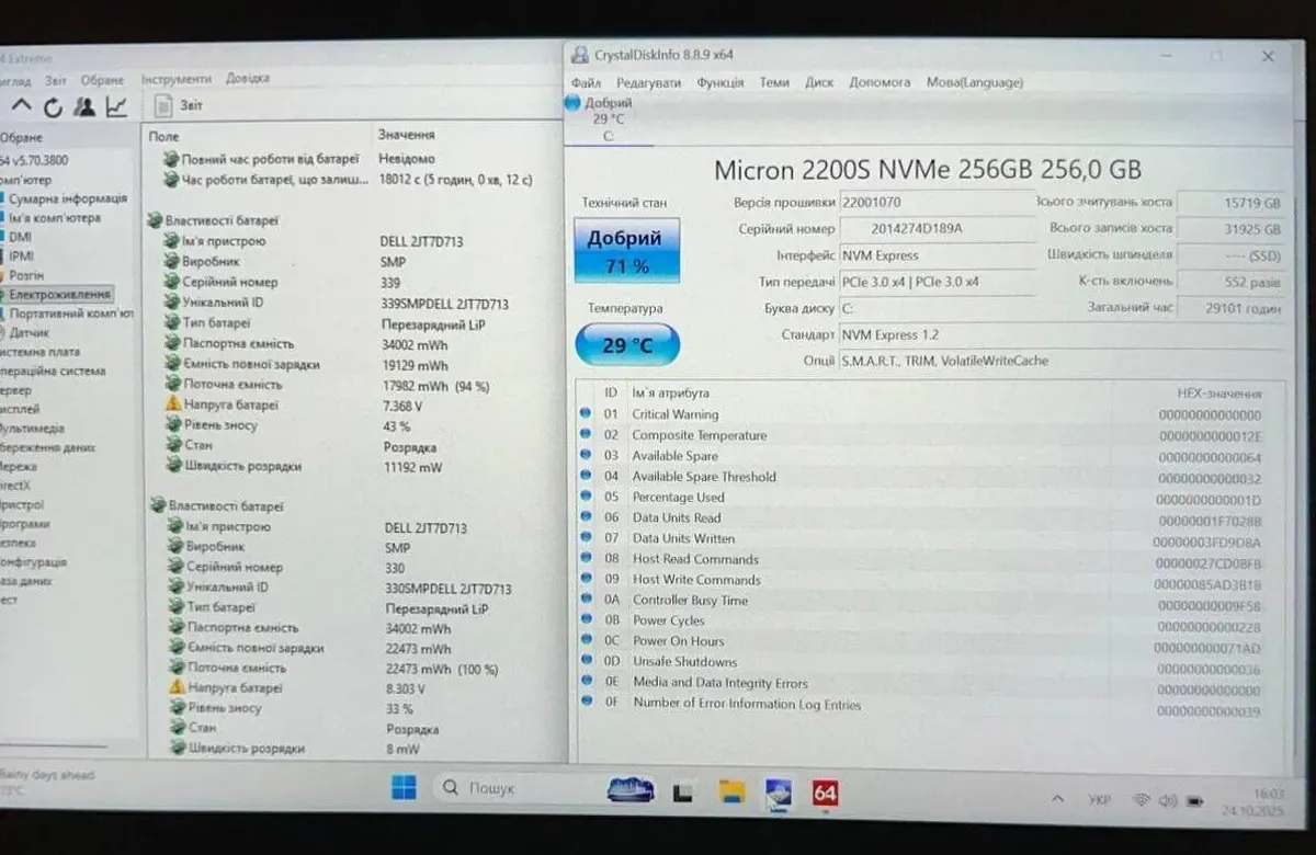 - Комплектація: ноутбук, зарядний пристрій, наклейки на клавіатуру