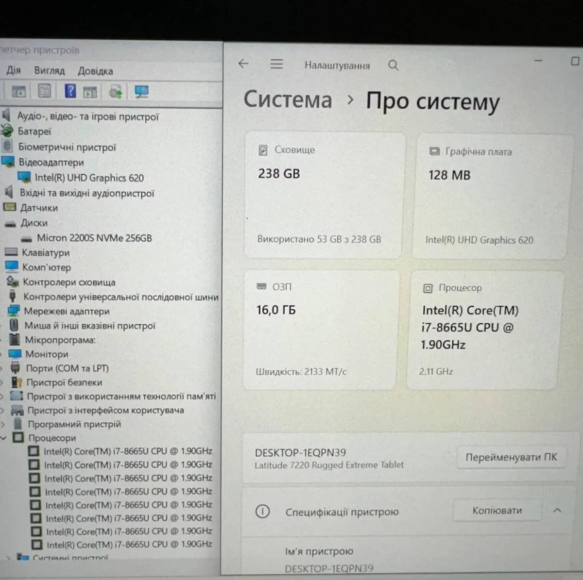 - Графіка: інтегрована Intel UHD Graphics 620 (до 1792 MB з ОЗП)