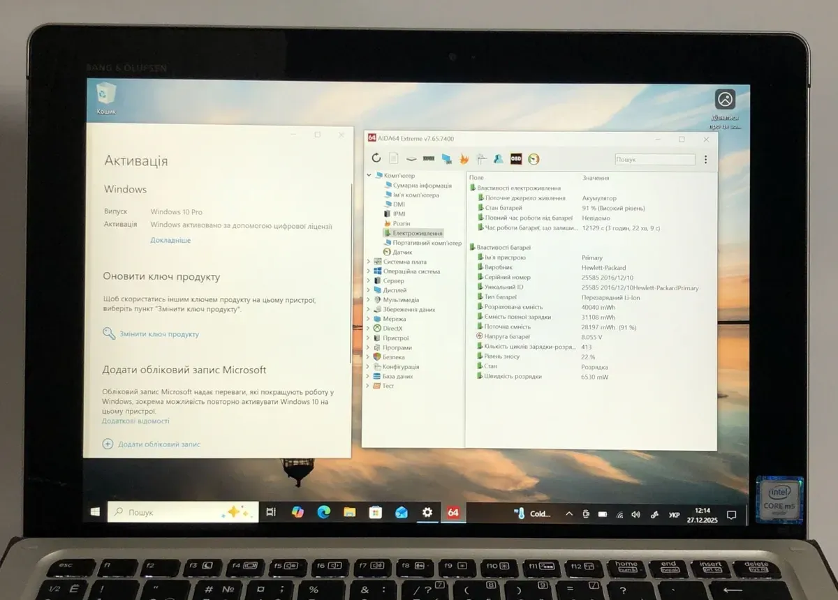 - Комплектація: ноутбук, зарядний пристрій, наклейки на клавіатуру