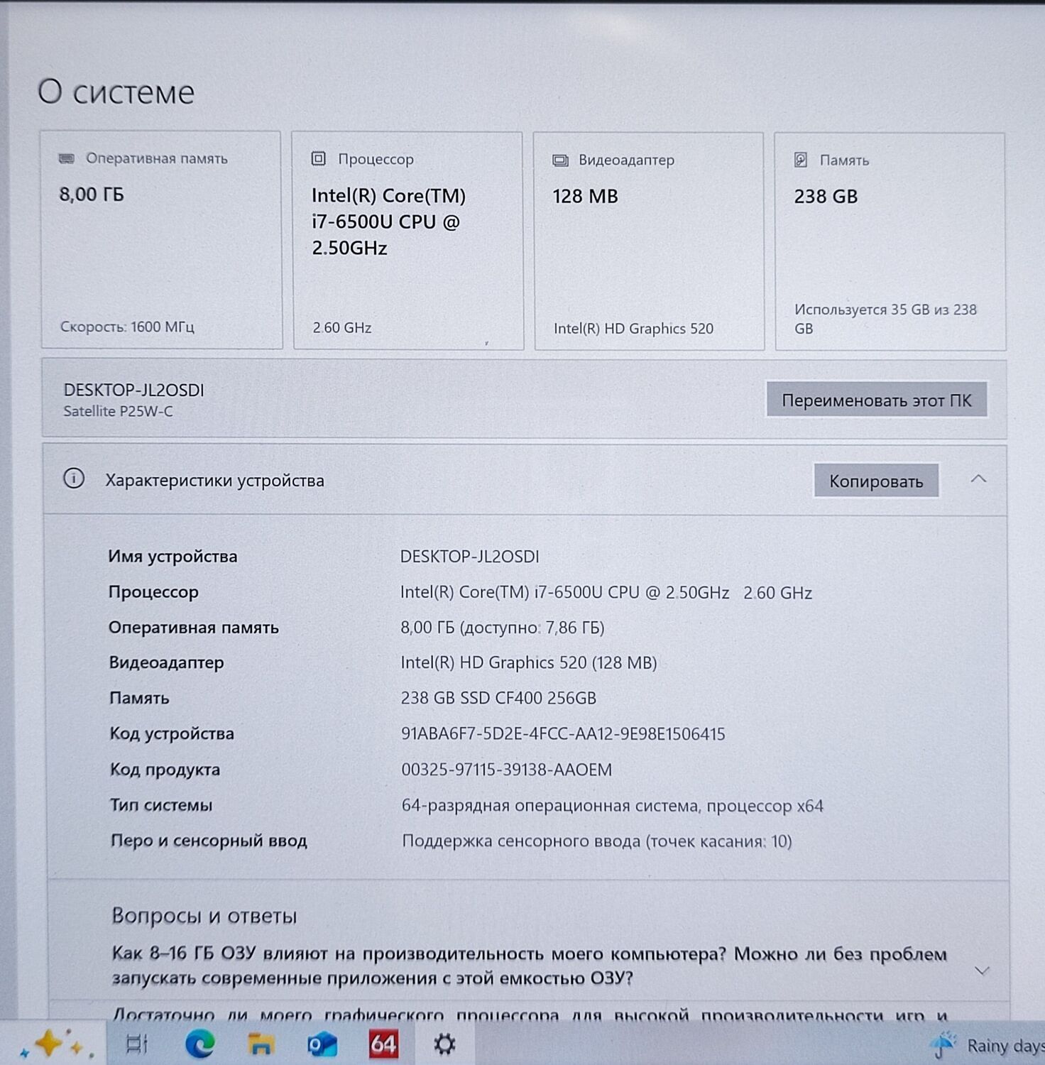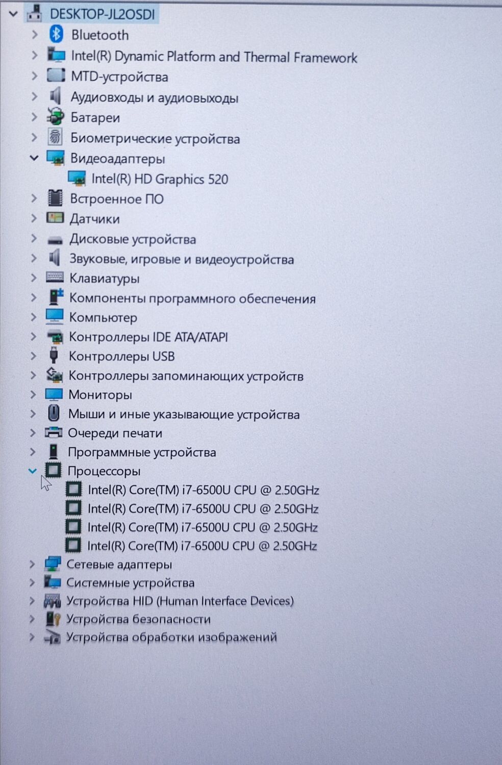 - Процесор: Intel Core i7-6500U (2 (4) ядра з тактовою частотою 2,5–3,1 ГГц), 4 МБ Smart Cache