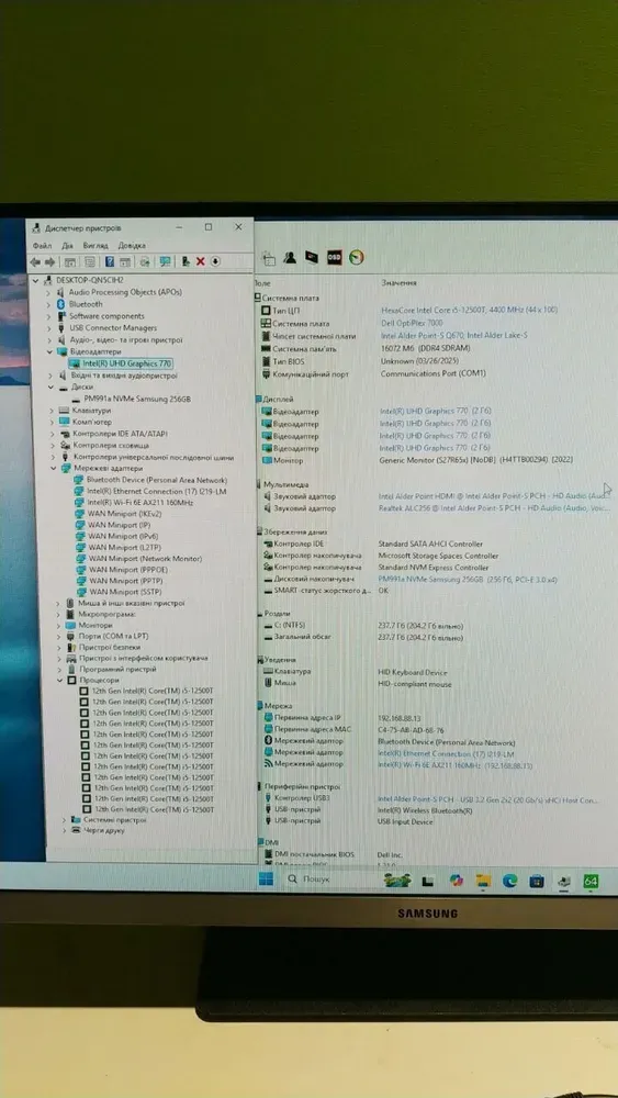 - Графіка: інтегрована Intel UHD Graphics 770 (до 1792 MB з ОЗП)