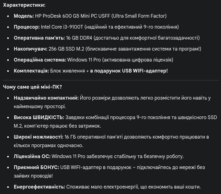 - Модель: HP ProDesk 600 G5 Mini USFF