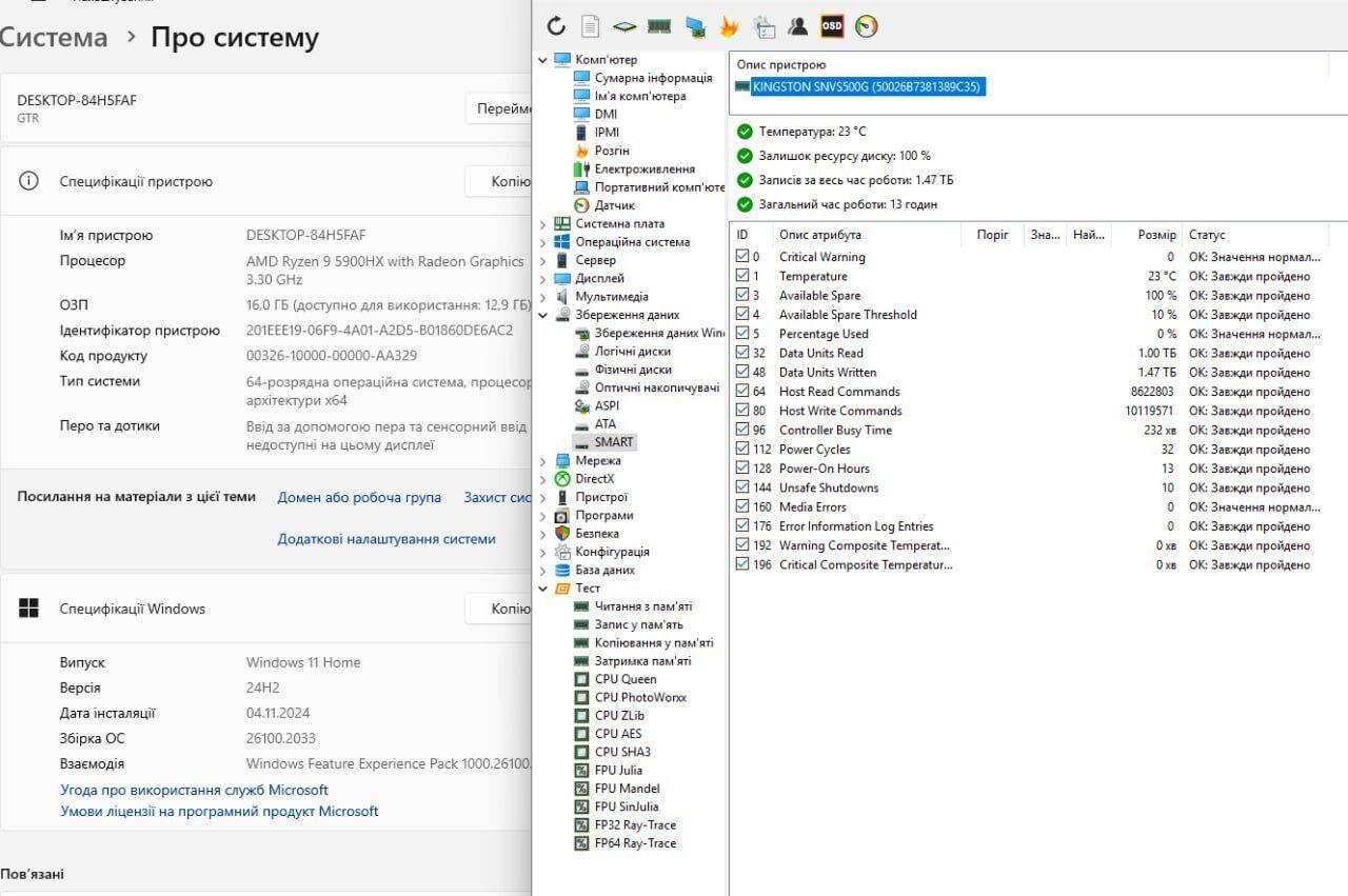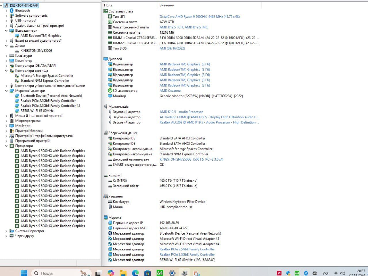 - Процесор: AMD Ryzen 9 5900HX (8 (16) ядер по 3.3 - 4.6 GHz), 16 MB Smart Cache
