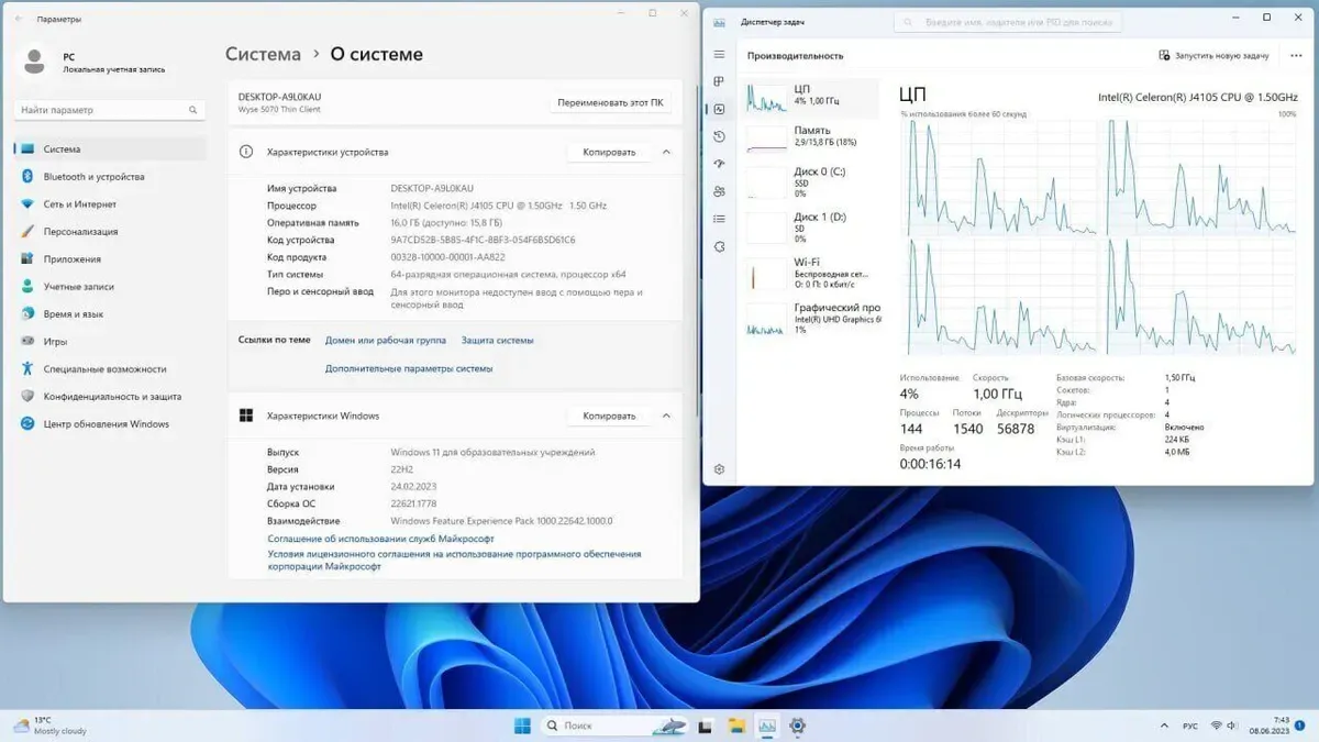 - Процесор: Intel Celeron J4105 (4 ядра по 1.5 - 2.5 GHz), 4 MB Cache