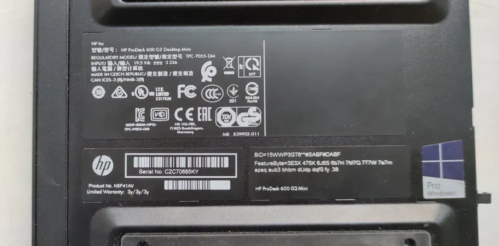 - Модель: HP ProDesk 600 G2 Mini PC USFF
