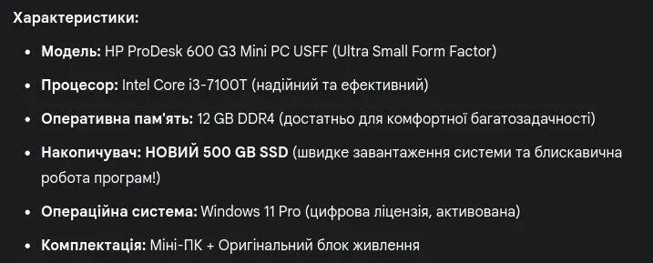 - Модель: HP ProDesk 600 G2 Mini PC USFF