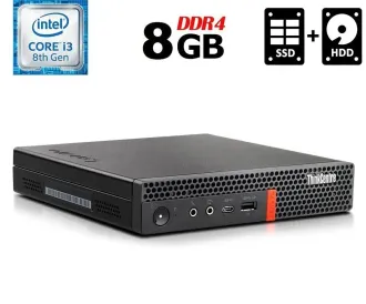 Неттоп Lenovo ThinkCentre M720q Tiny USFF / Intel Core i3-8100T (4 ядра по 3.1 GHz) / 8GB DDR4 / 120GB SSD + 500GB HDD / Intel UHD Graphics 630 / USB 3.1 / Блок живлення б/в