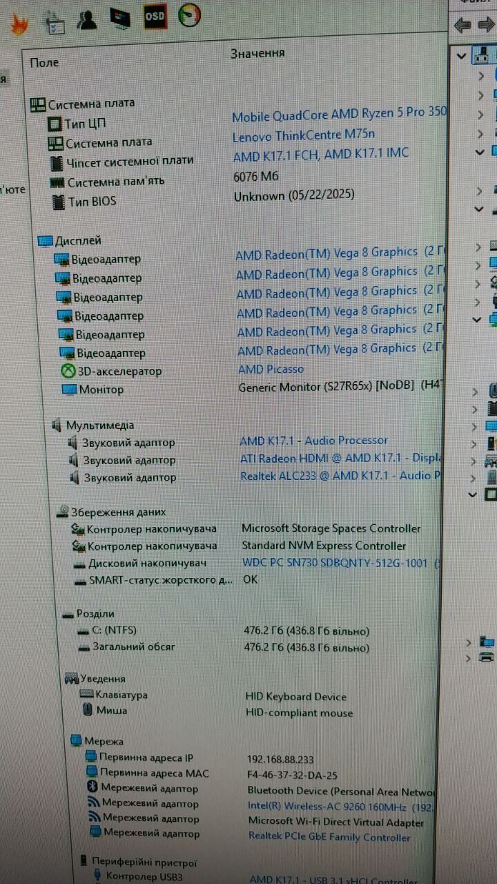 - Модель: Lenovo ThinkCentre M75n USFF