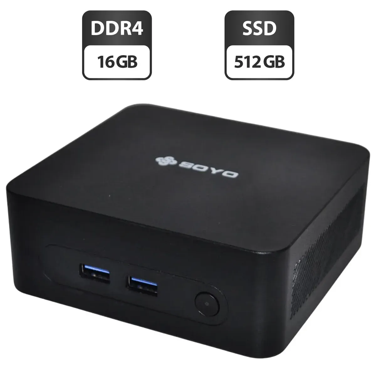 Неттоп Soyo M2 Plus Mini PC USFF / Intel N100 (4 ядра по 3.4 GHz) / 16 GB DDR4 / 512 GB SSD / Intel UHD Graphics / Wi-Fi, Bluetooth / Windows 11