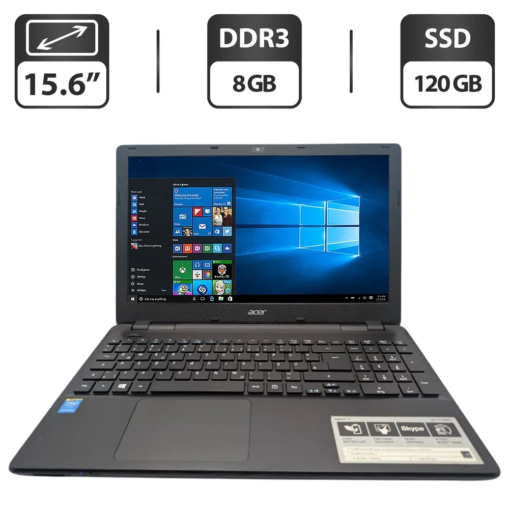Ноутбук Acer Aspire E5-511 з екраном 15.6" (1366x768) TN на базі процесора Intel Pentium N3530 і оперативною пам'яттю 8 GB DDR3 для офісної роботи і домашніх завдань