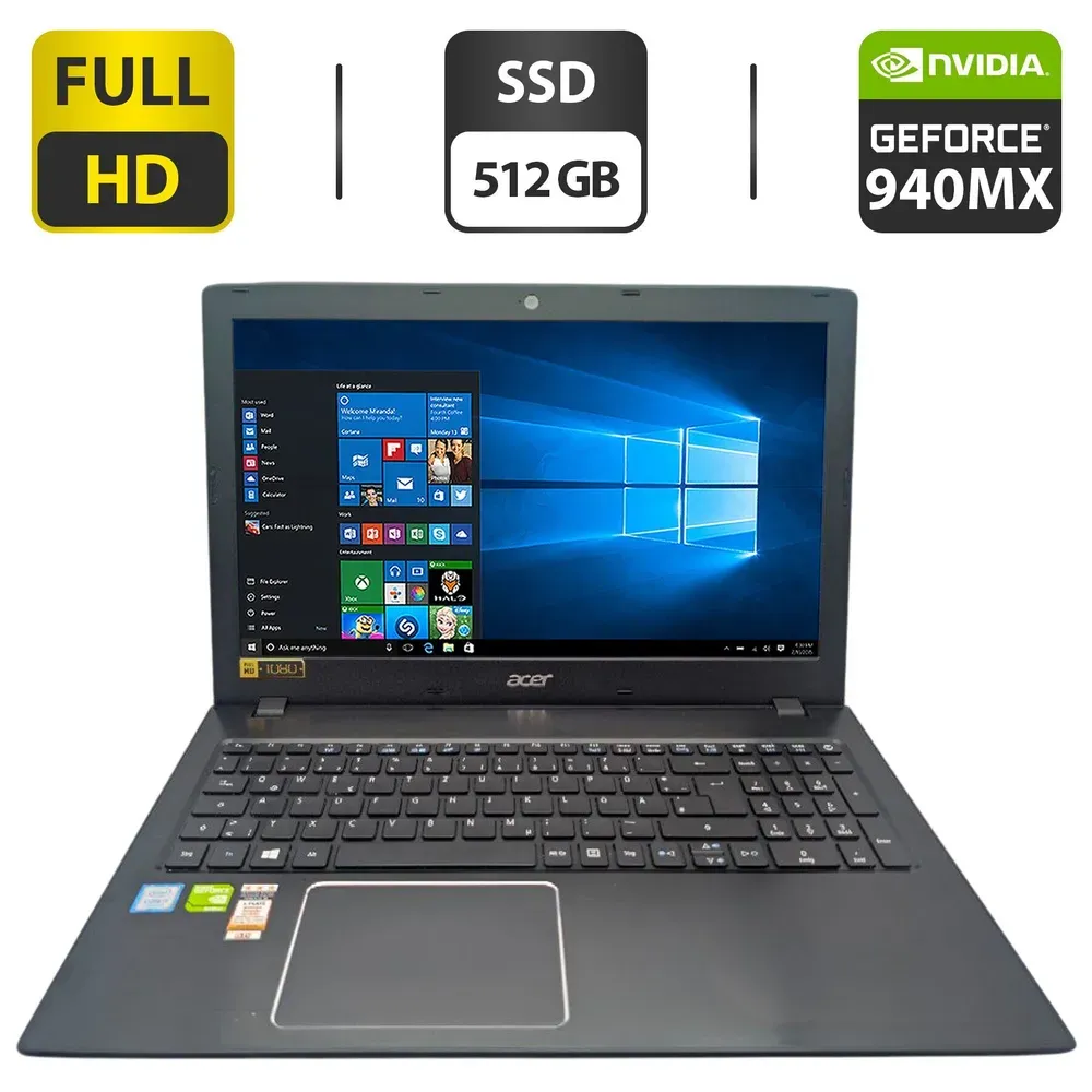 Ноутбук Acer Aspire E5-575G / 15.6" (1920x1080) IPS / Intel Core i7-7500U (2 (4) ядра по 2.7 - 3.5 GHz) / 16 GB DDR4 / 512 GB SSD / nVidia GeForce 940MX, 2 GB GDDR5, 64-bit / WebCam / DVD-ROM б/в