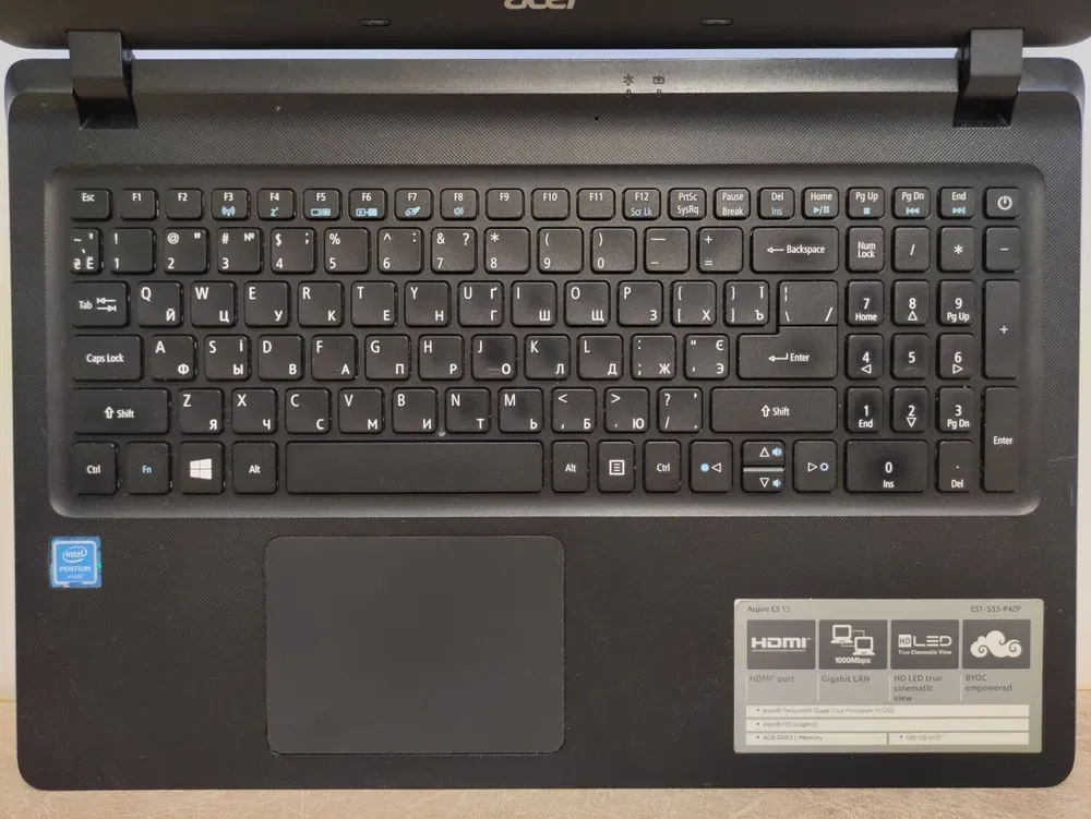 - Комплектація: ноутбук, зарядний пристрій, наклейки на клавіатуру