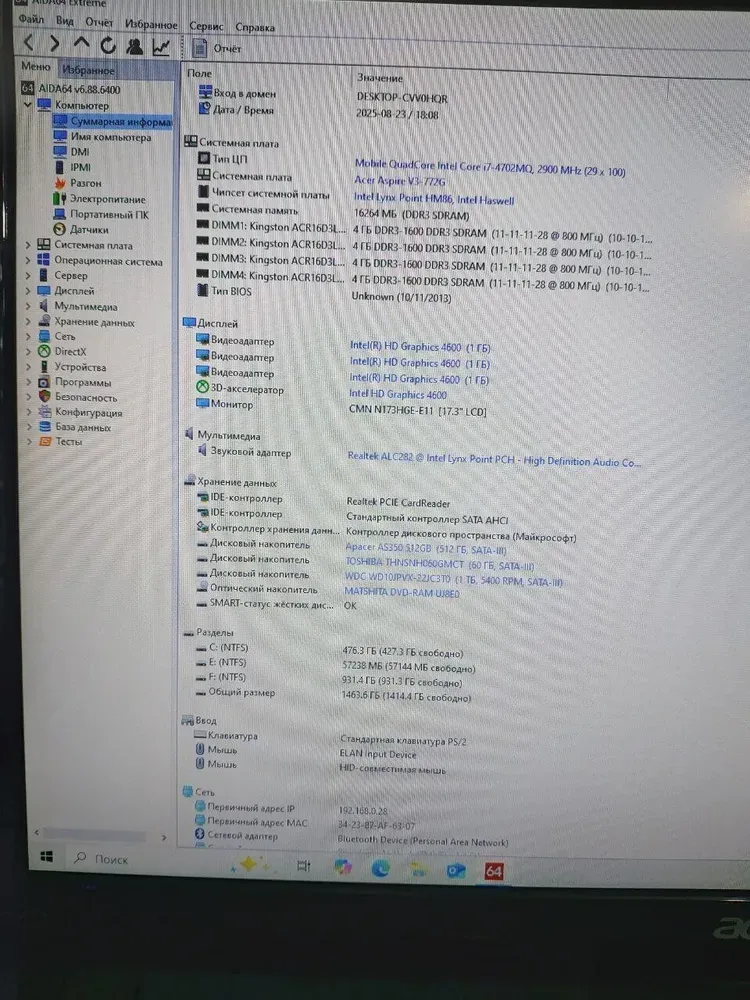 - Постійна пам'ять: 60 GB SSD Toshiba + 512 GB SSD Apacer (нова комплектуюча) + 1000 GB HDD WDC