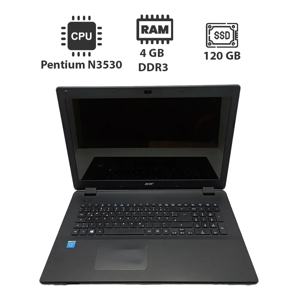 Ноутбук Acer ES1-511 / 15.6" (1366x768) TN / Intel Pentium N3530 (4 ядра по 2.16 - 2.58 GHz) / 4 GB DDR3 / 120 GB SSD / Intel HD Graphics / WebCam б/в