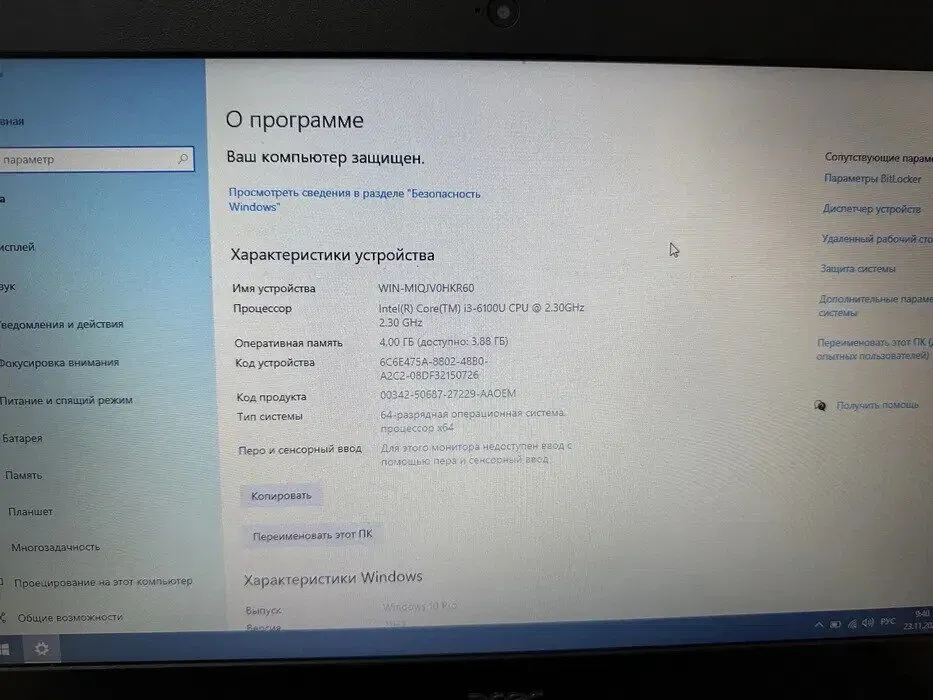 - Процесор: Intel Core i3-6100U (2 (4) ядра по 2.3 GHz), 3 MB Smart Cache