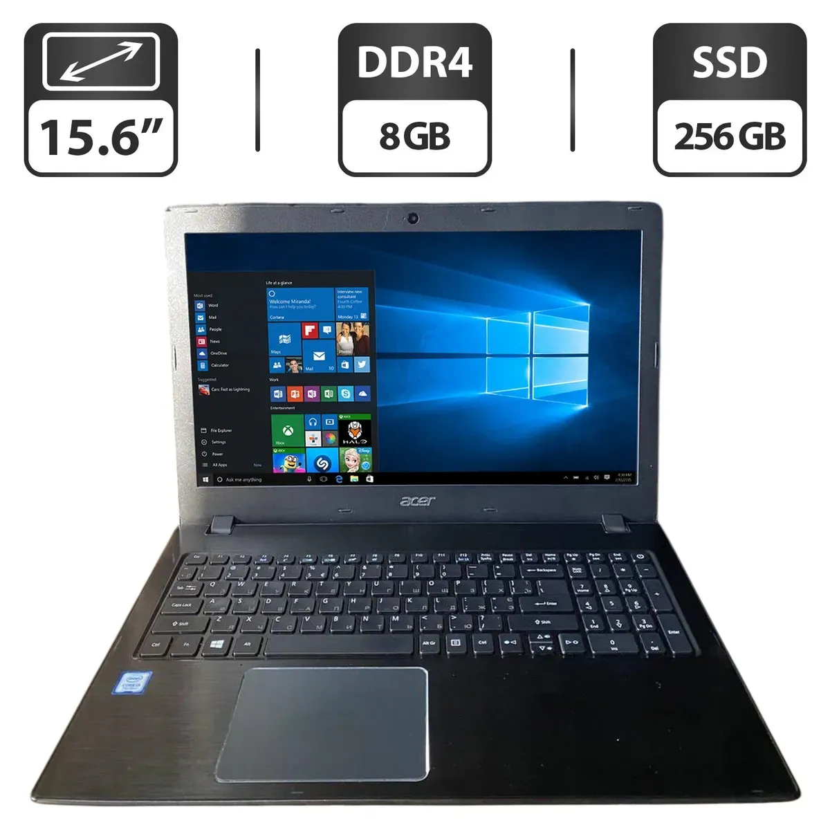 - Комплектація: ноутбук, зарядний пристрій, наклейки на клавіатуру