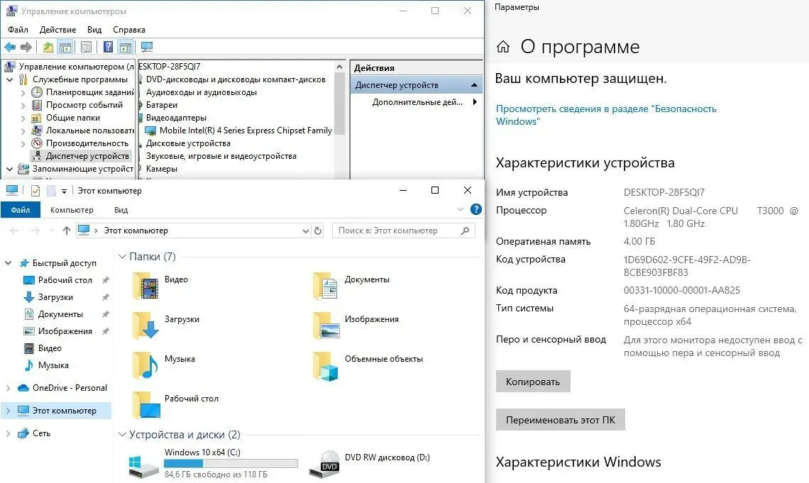- Процесор: Intel Celeron T3000 (2 ядра по 1.8 GHz), 1 MB Cache