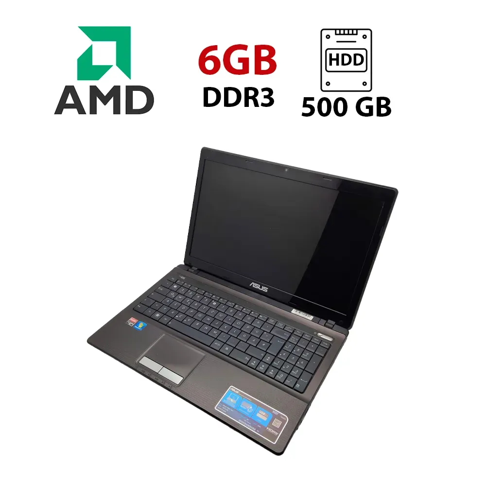 Ноутбук Asus K53 / 15.6" (1366x768) TN / AMD A6-3420M (4 ядра по 1.5 - 2.4 GHz) / 6 GB DDR3 / 500 GB HDD / AMD Radeon HD 6520G Graphics / WebCam / VGA б/в