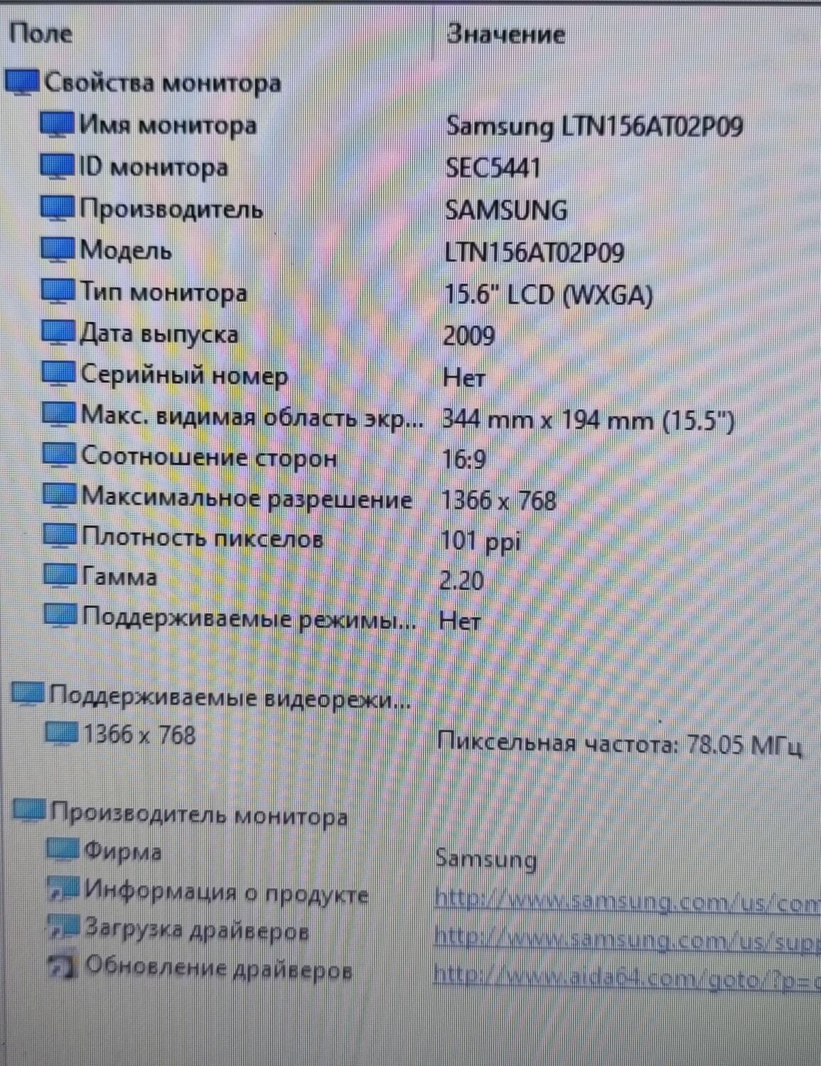 - Екран (діагональ, роздільна здатність, тип матриці): 15,6" (1366x768) TN