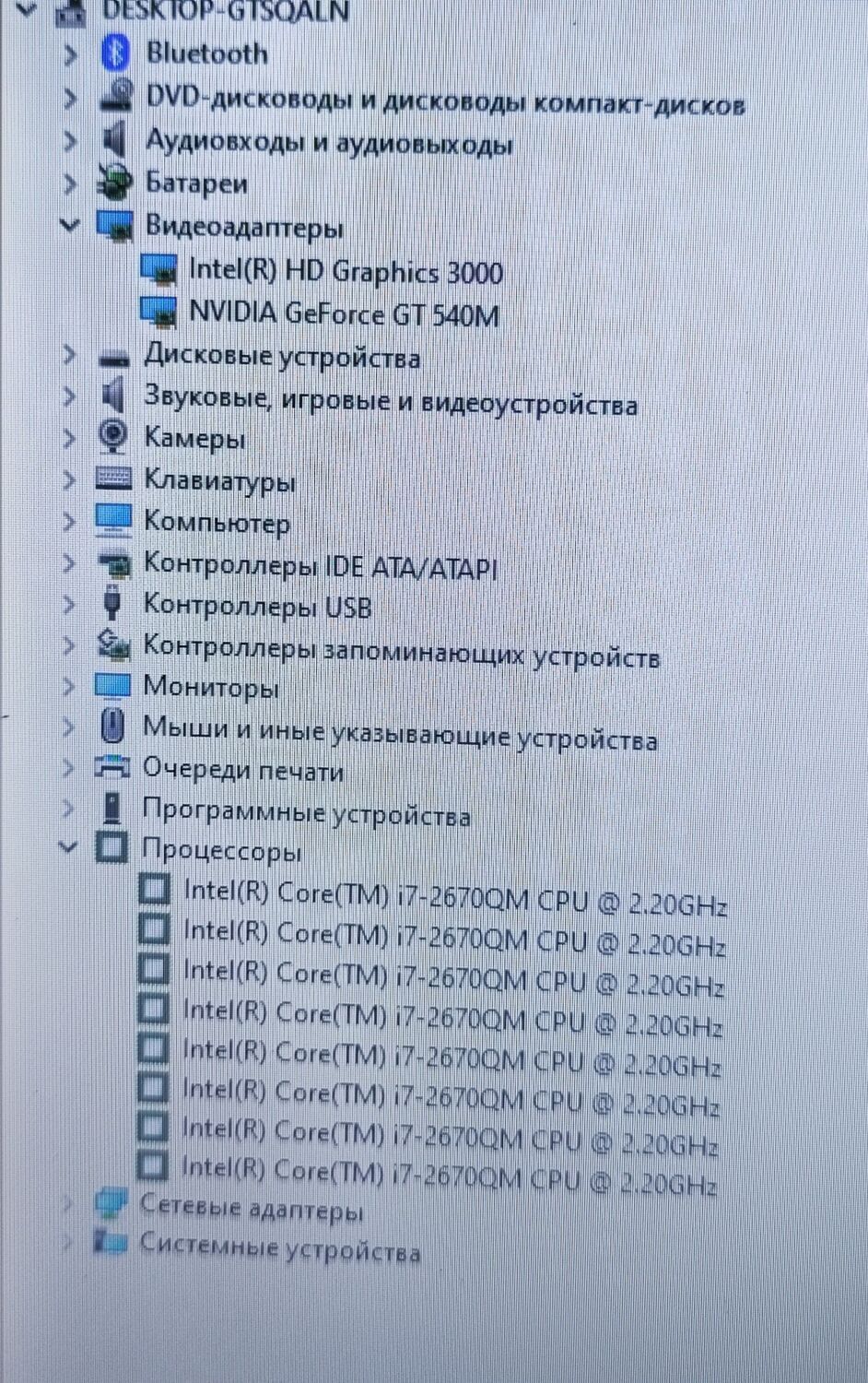 - Процесор: Intel Core i7-2670QM (4 (8) ядра з тактовою частотою 2,2–3,1 ГГц), 6 МБ Smart Cache