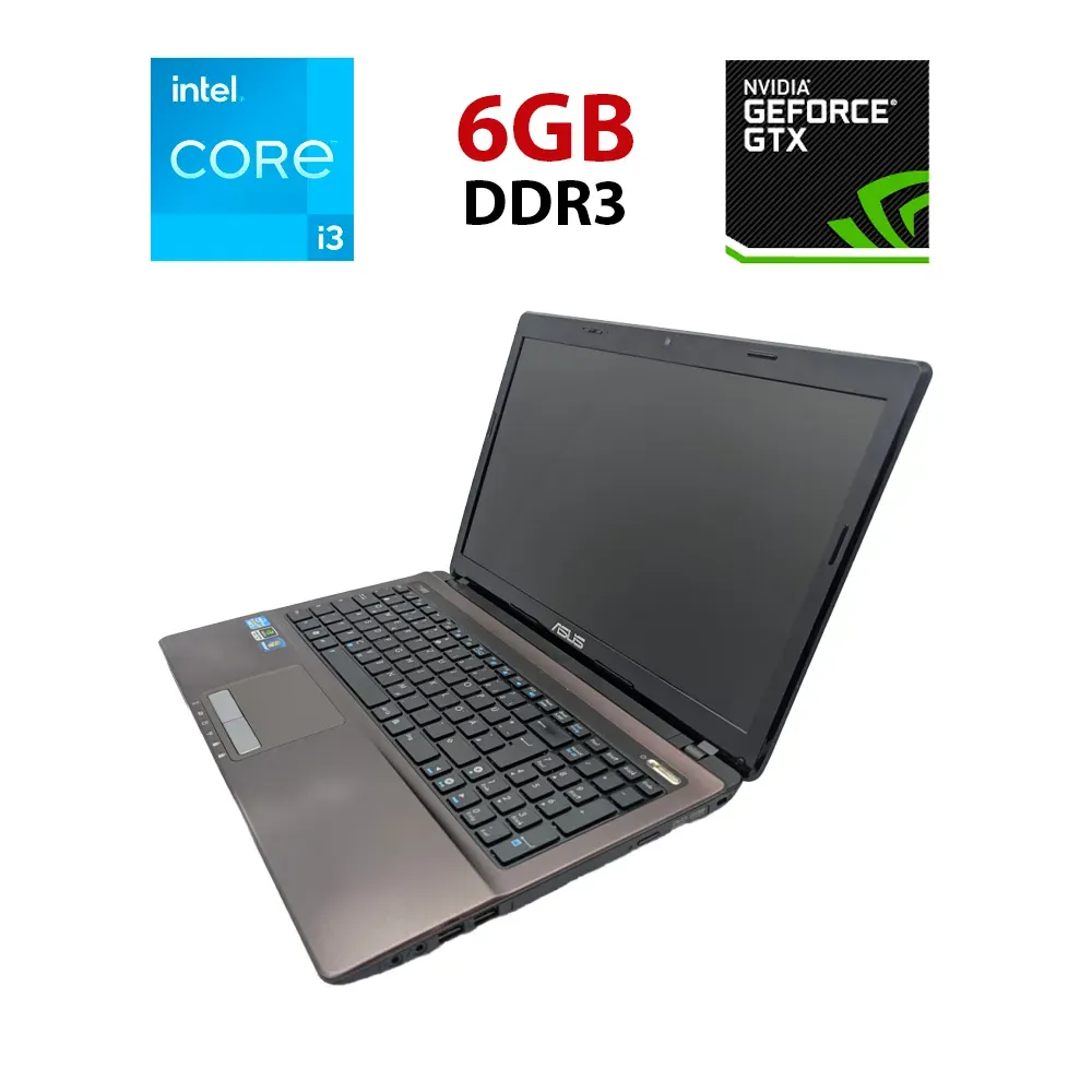 Ноутбук Asus K53S c екраном 15.6" (1366x768) TN на базі процесора Intel Core i3-2310M та оперативною пам'яттю 6 GB DDR3 для роботи та домашніх завдань