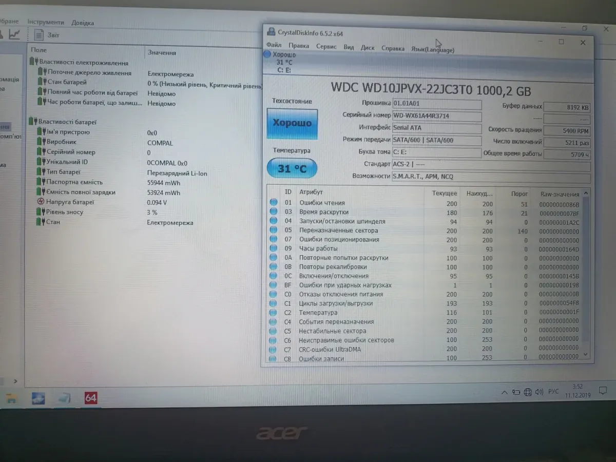 - Комплектація: ноутбук, зарядний пристрій, наклейки на клавіатуру