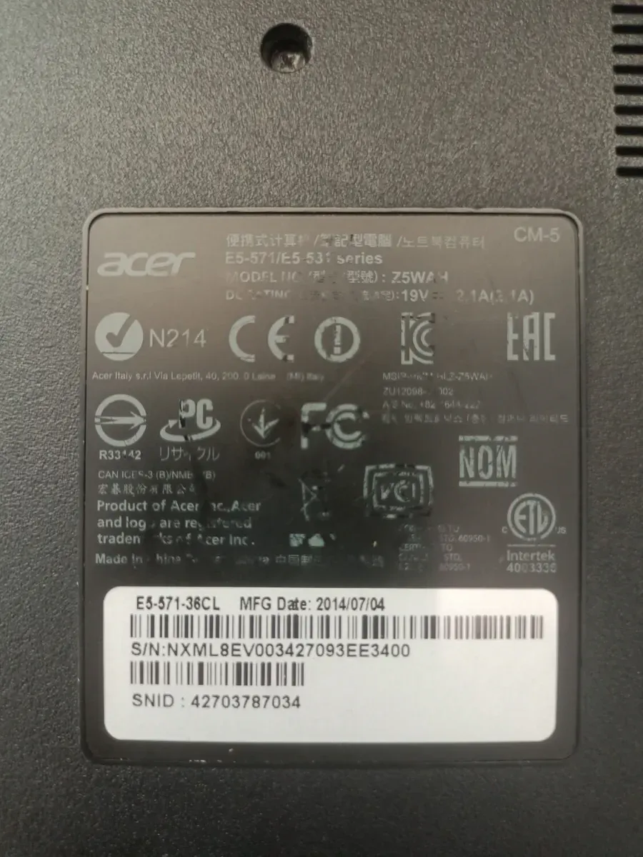 Ноутбук Б-клас Acer Aspire E5-571 з екраном 15.6" (1366x768) TN на базі процесора Intel Core i3-4030U та оперативної пам'яті 8 GB DDR3 для офісної роботи та домашніх завдань
