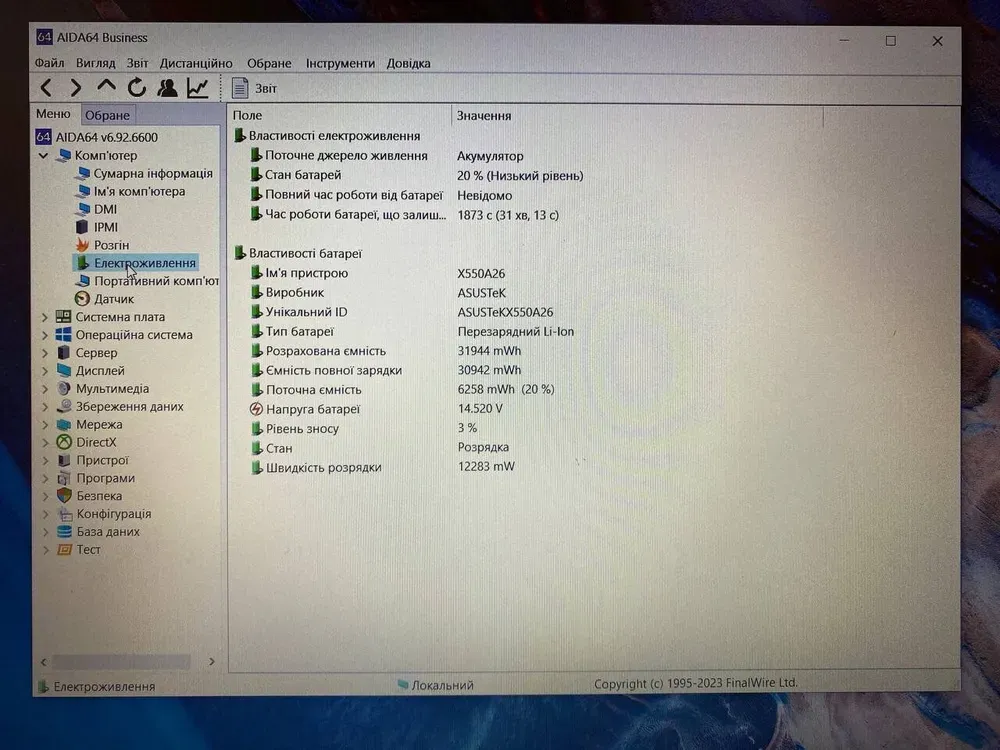 - Комплектація: ноутбук, зарядний пристрій, наклейки на клавіатуру