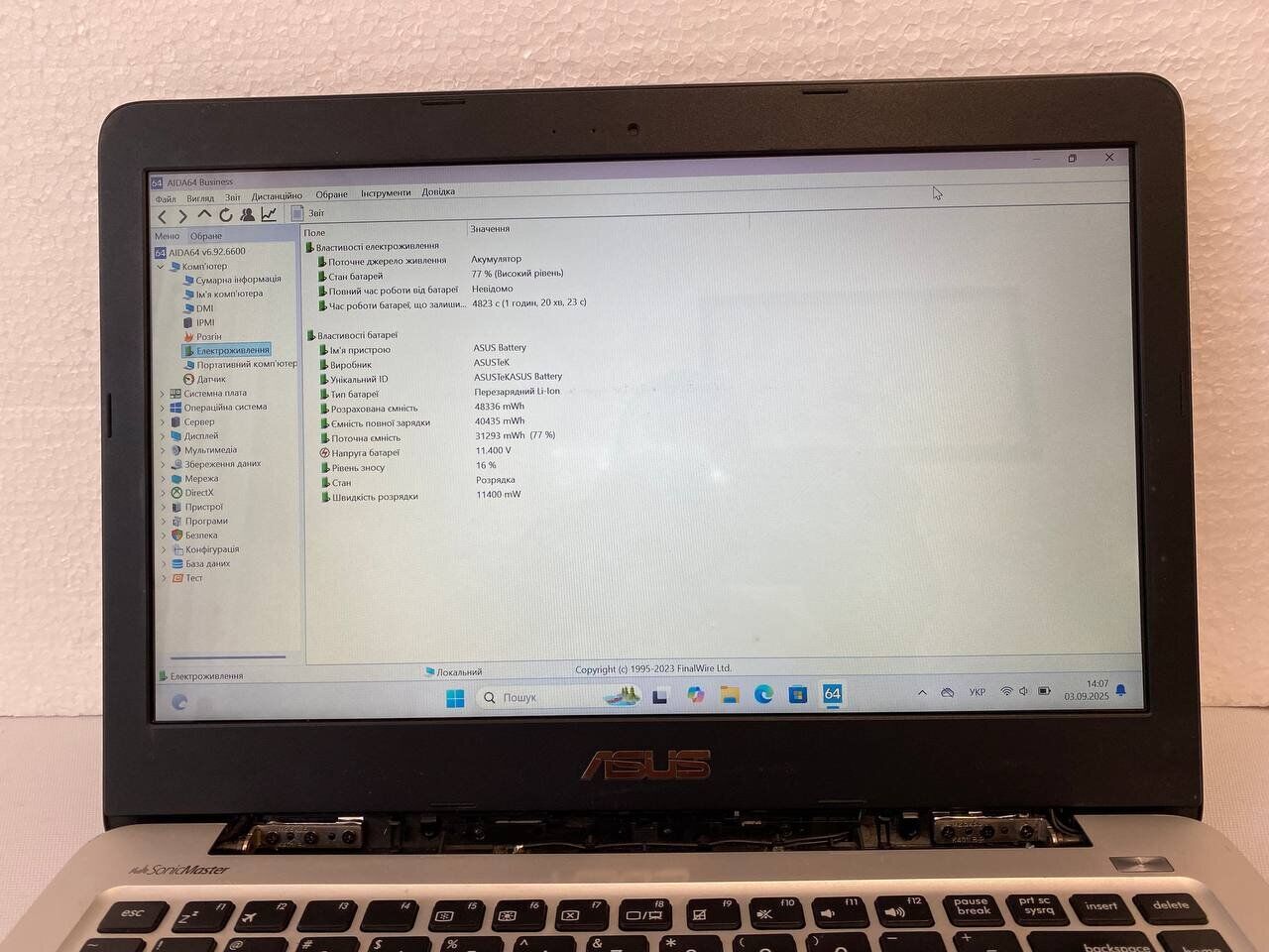 - Комплектація: ноутбук, зарядний пристрій, наклейки на клавіатуру