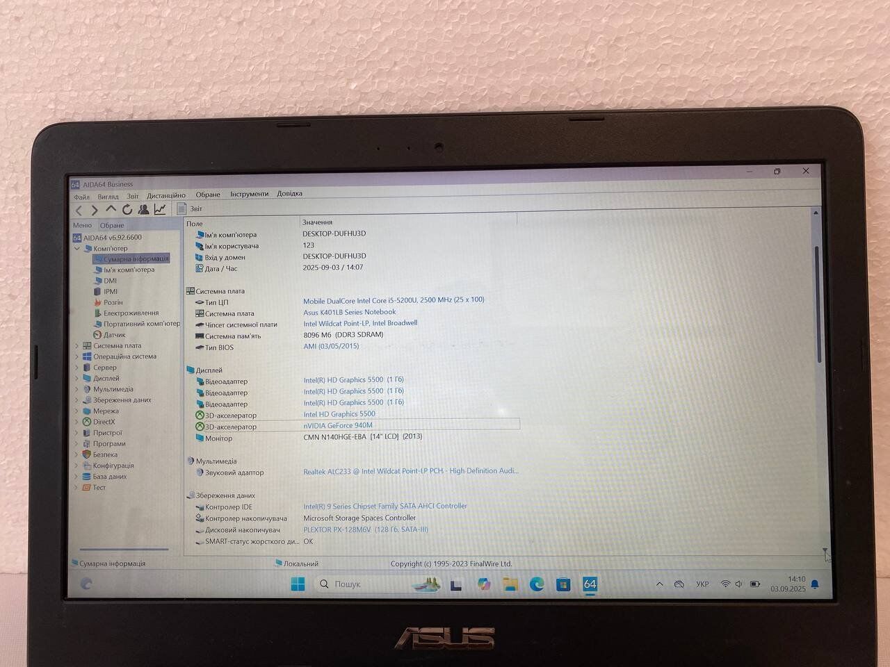 Ноутбук Б-класу Asus K401L з екраном 14" (1920x1080) TN на базі процесора Intel Core i5-5200U і дискретної відеокарти nVidia GeForce 940M 2 GB для роботи і домашніх завдань
