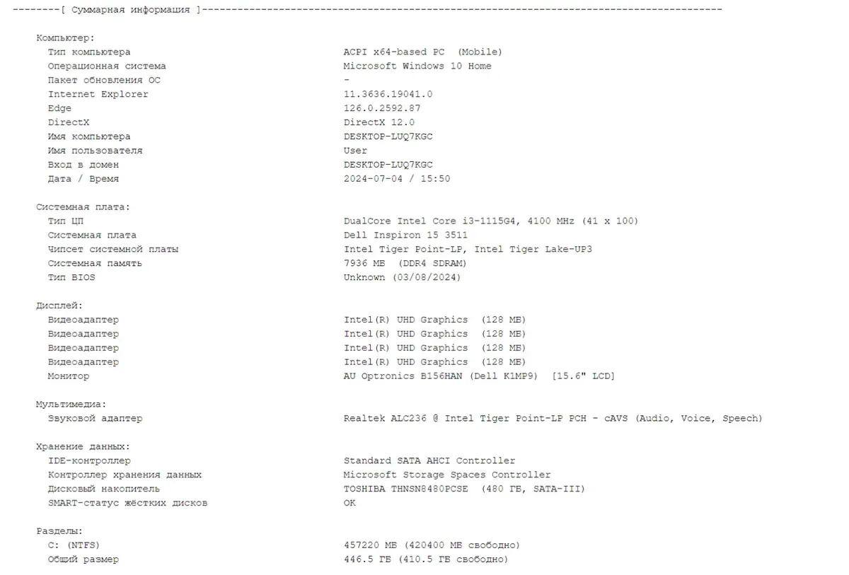 - Операційна система: Windows 10 активована вшитим у BIOS ключем